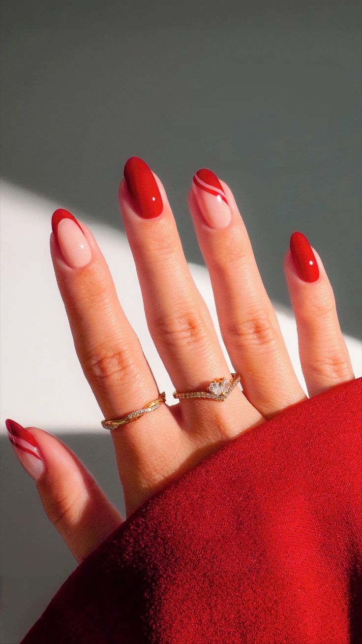 2. طراحی فرنچ قرمز: به جای نوک سفید، از رنگ قرمز برای طراحی فرنچ استفاده کنید. این طراحی هم مدرن و هم شیک است.