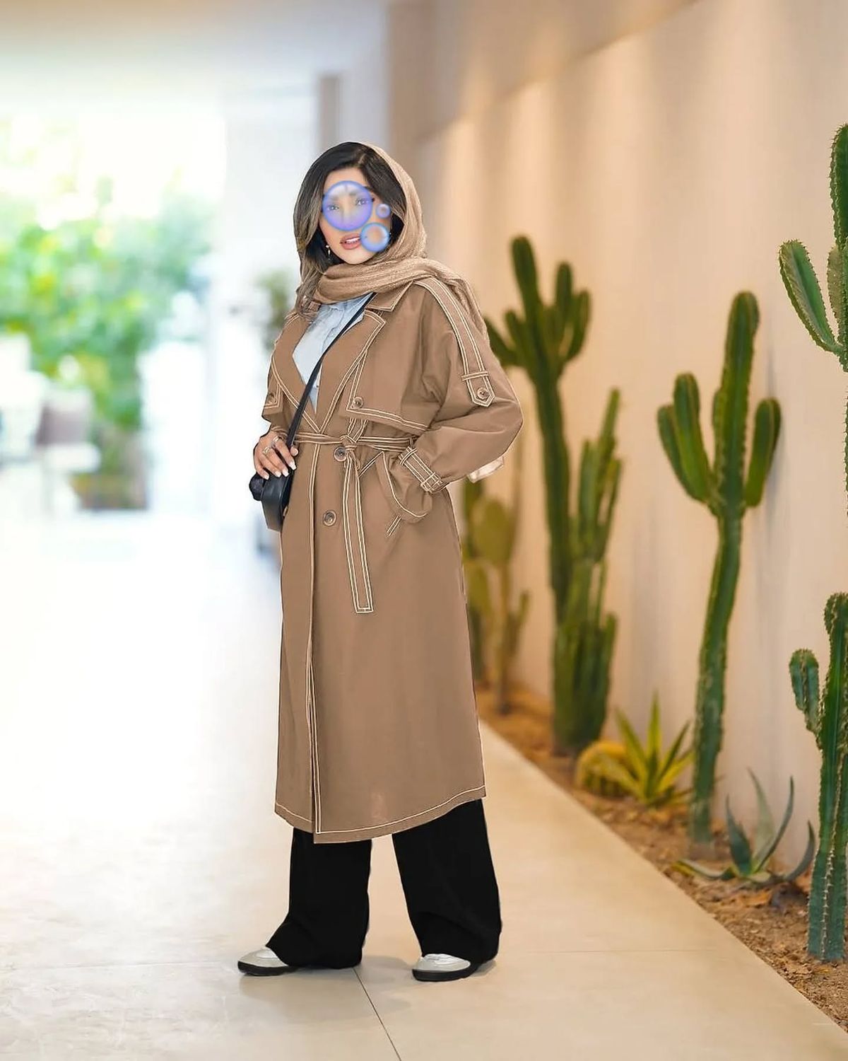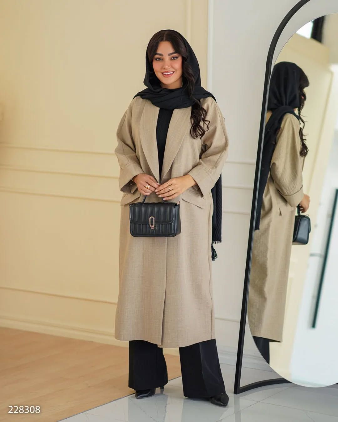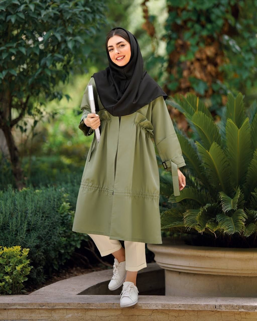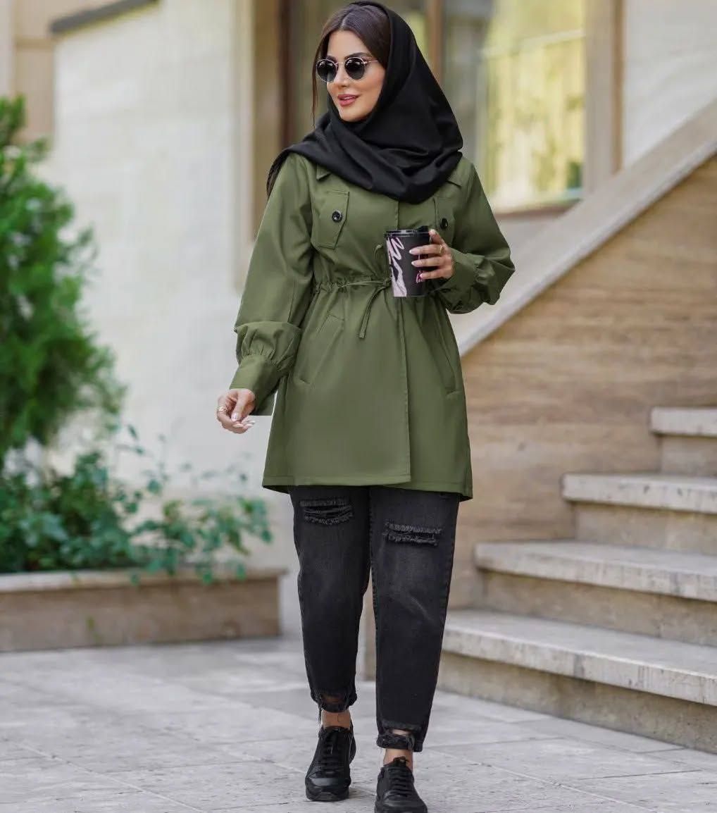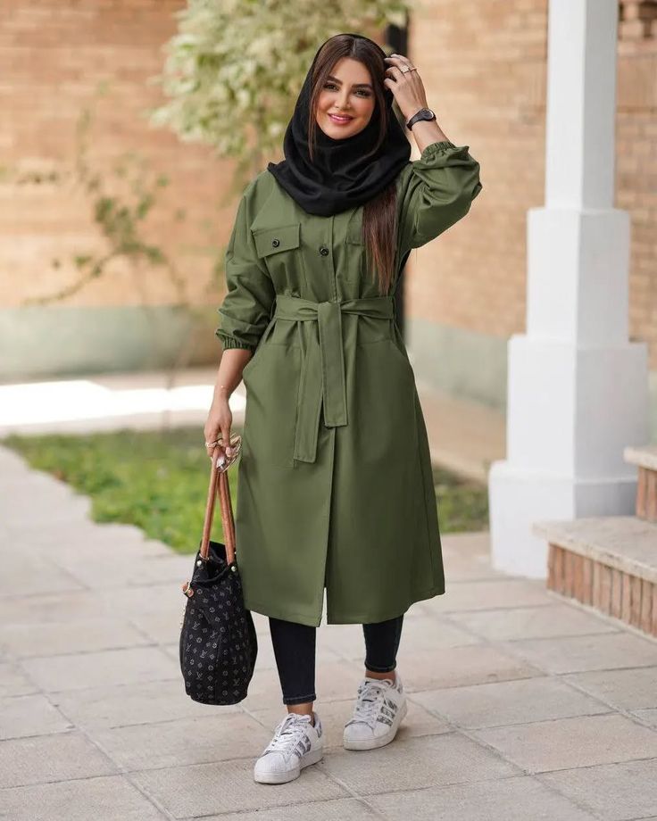 لایه زیرین: یه بافت نازک زیتونی زیر مانتوی مشکی، استایلتون رو از سادگی درمیاره!