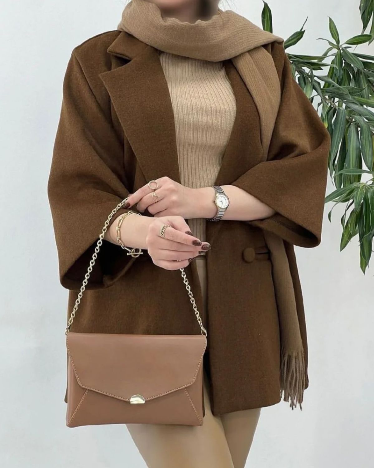 - مانتو یا پالتو: خریدن یک مانتوی پشمی قهوهای تیره یا یک پافر قهوهای، سرمایهگذاری اصلی شما برای این فصله.