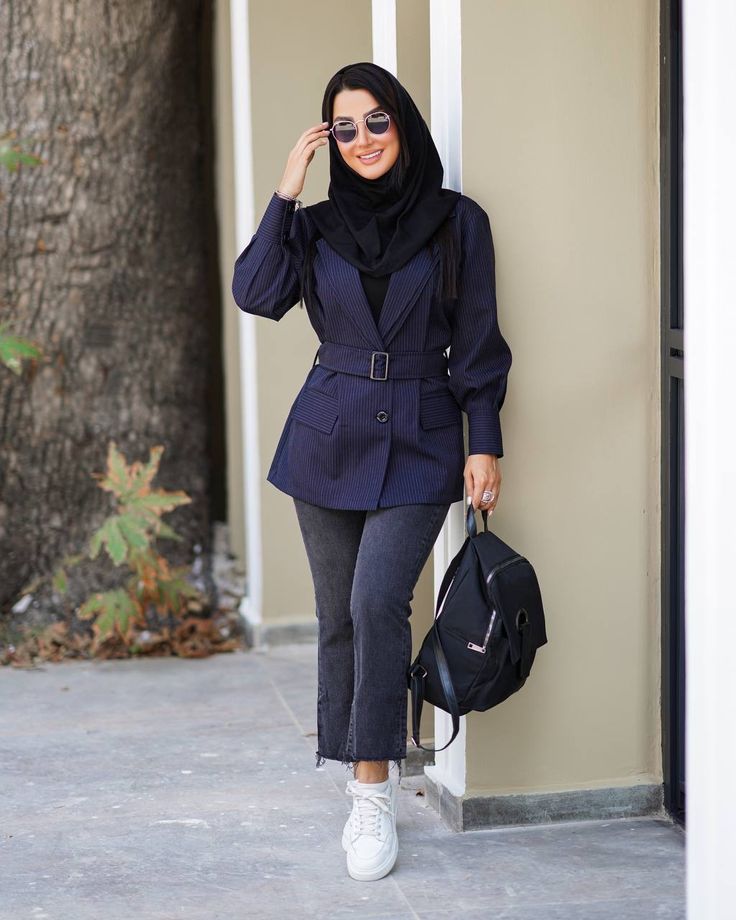 استایل با رنگ سرمهای؛ گزینه شیک برای دانشگاه