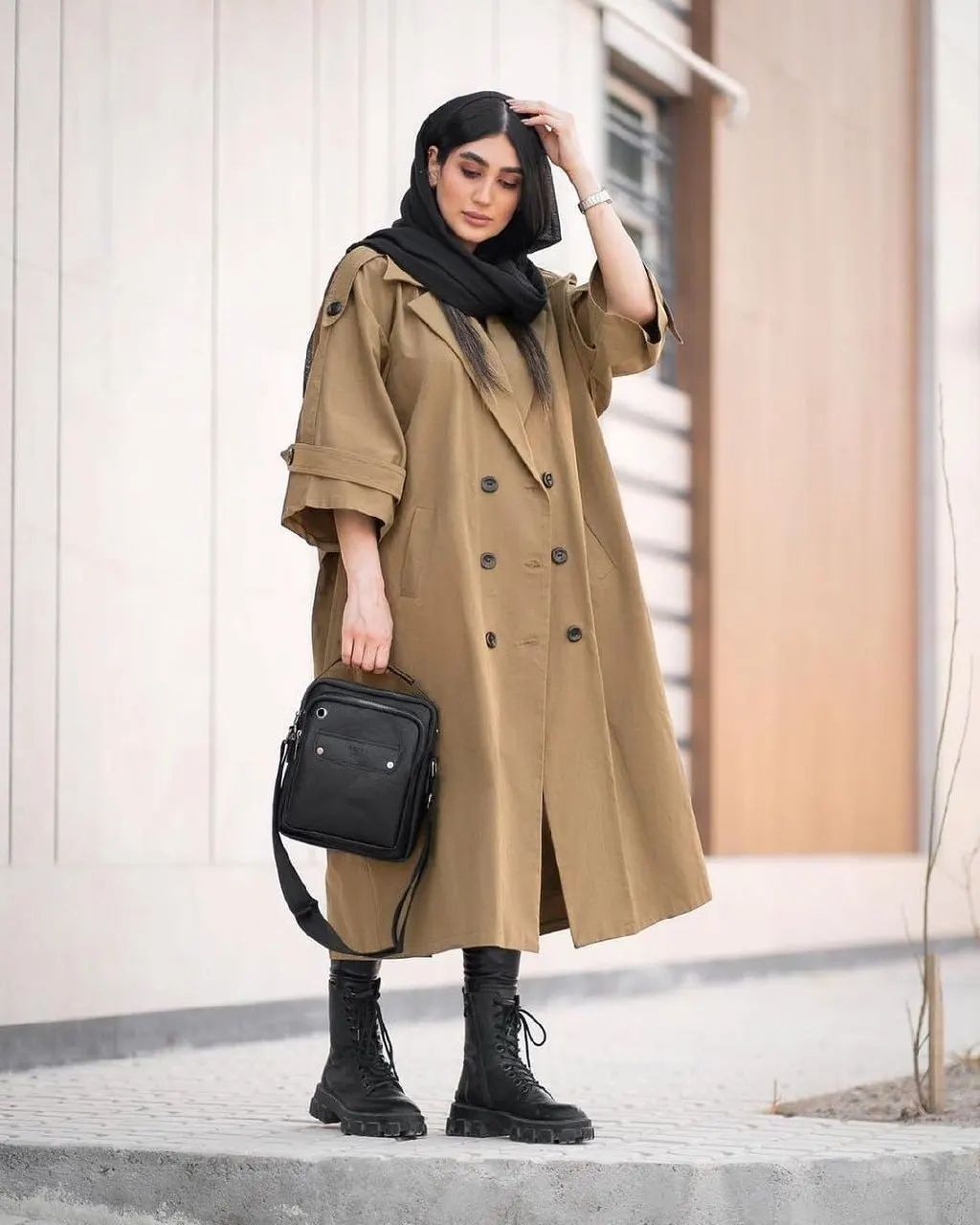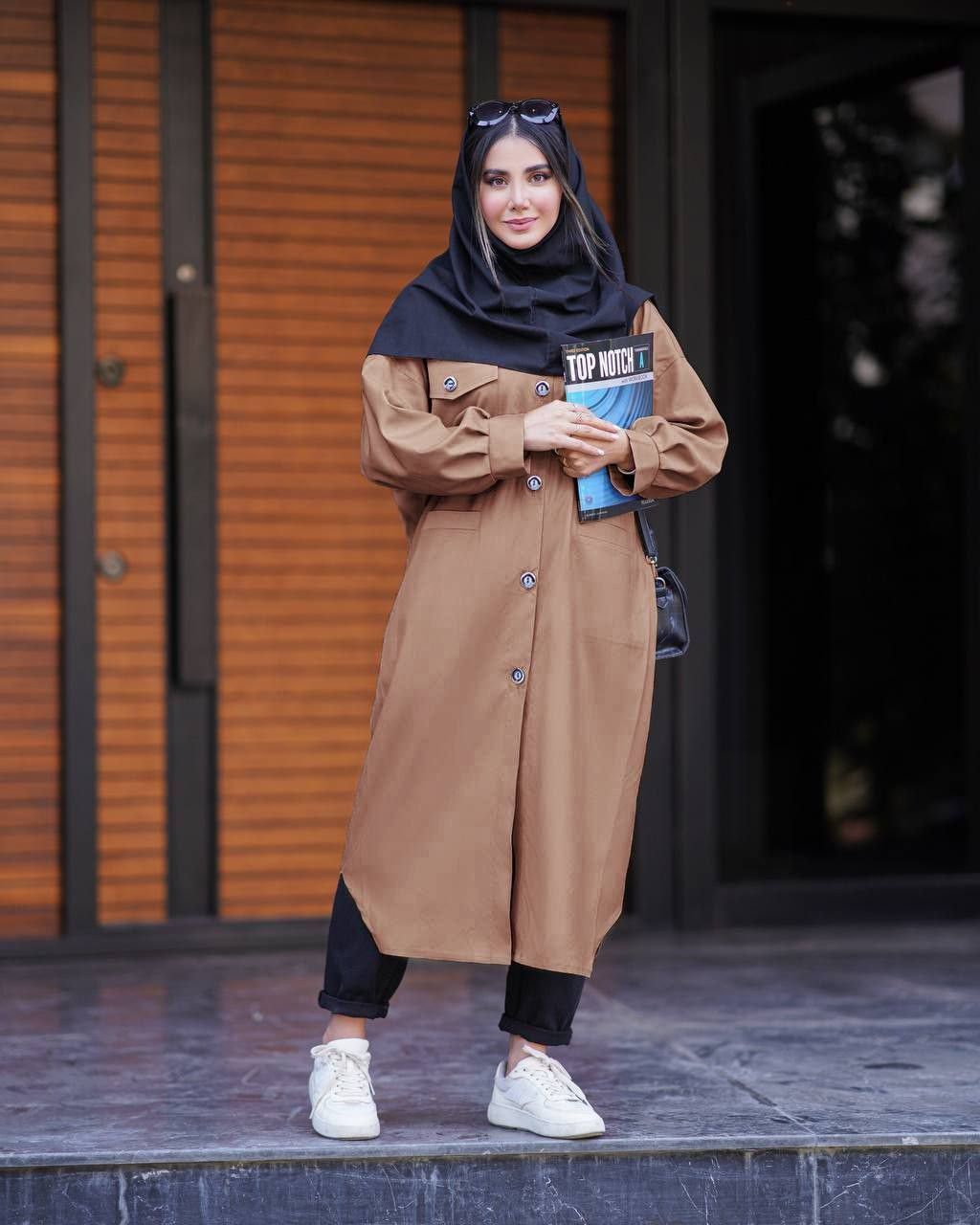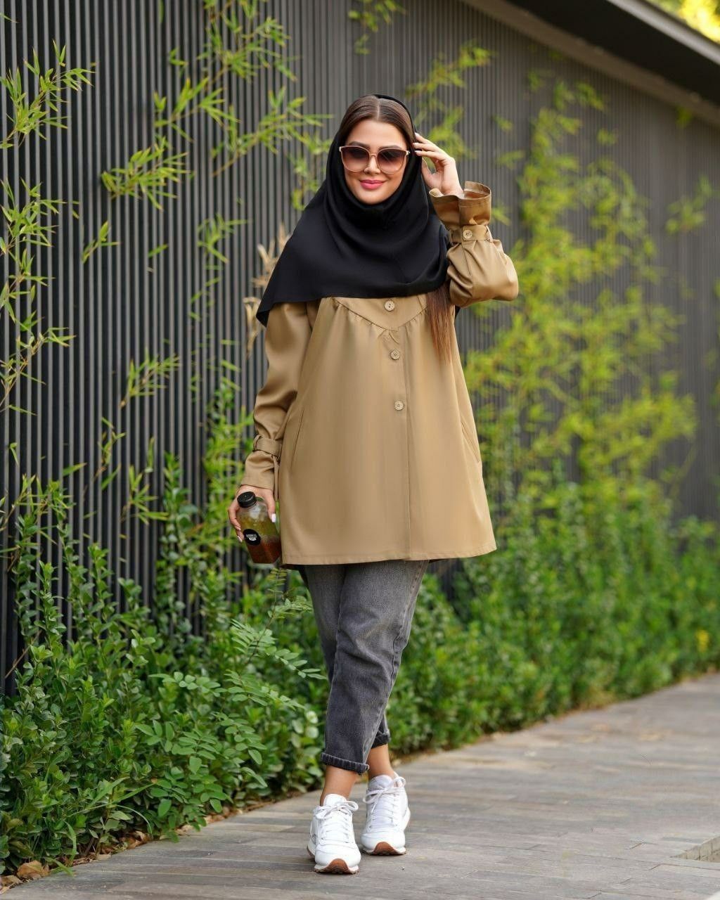 اگر تمایل دارید استایلی مدرن داشته باشید، بهتر است به سراغ مانتوهای آزاد یقهدار با رنگهایی مثل زیتونی یا قهوهای بروید.
