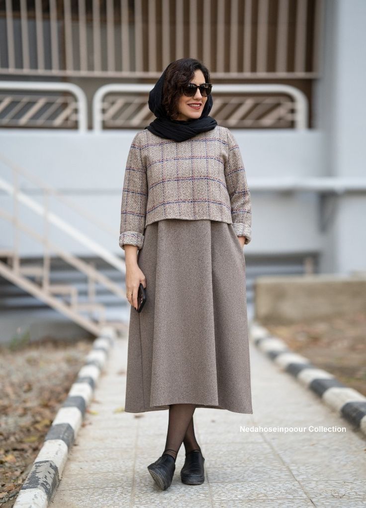 - پیراهن نخی + ژاکت سبک + کت بلند، یک استایل کامل و کاربردی برای یک دانشجو است.