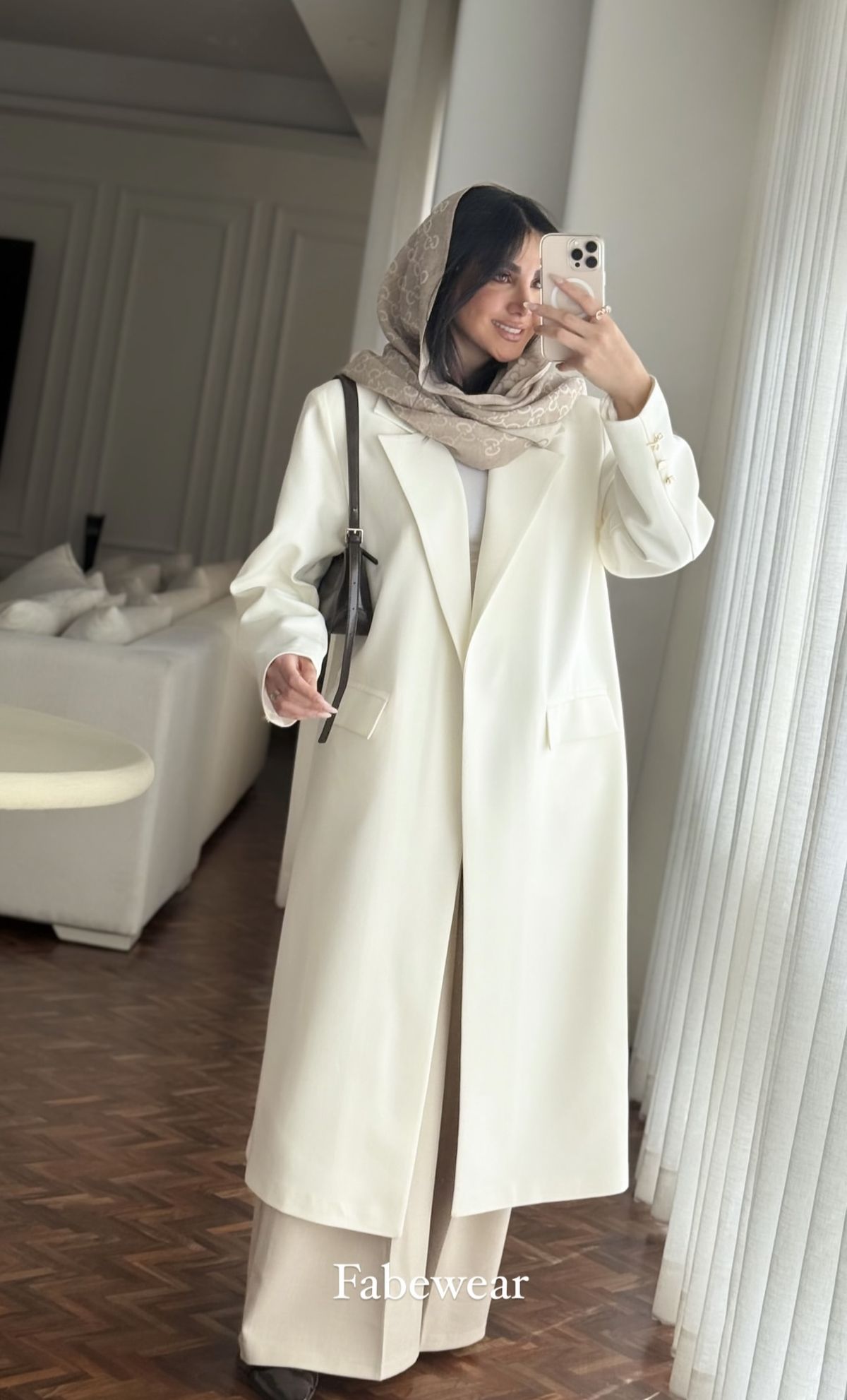 تکمیل استایل مانتو بلند با شال و روسری