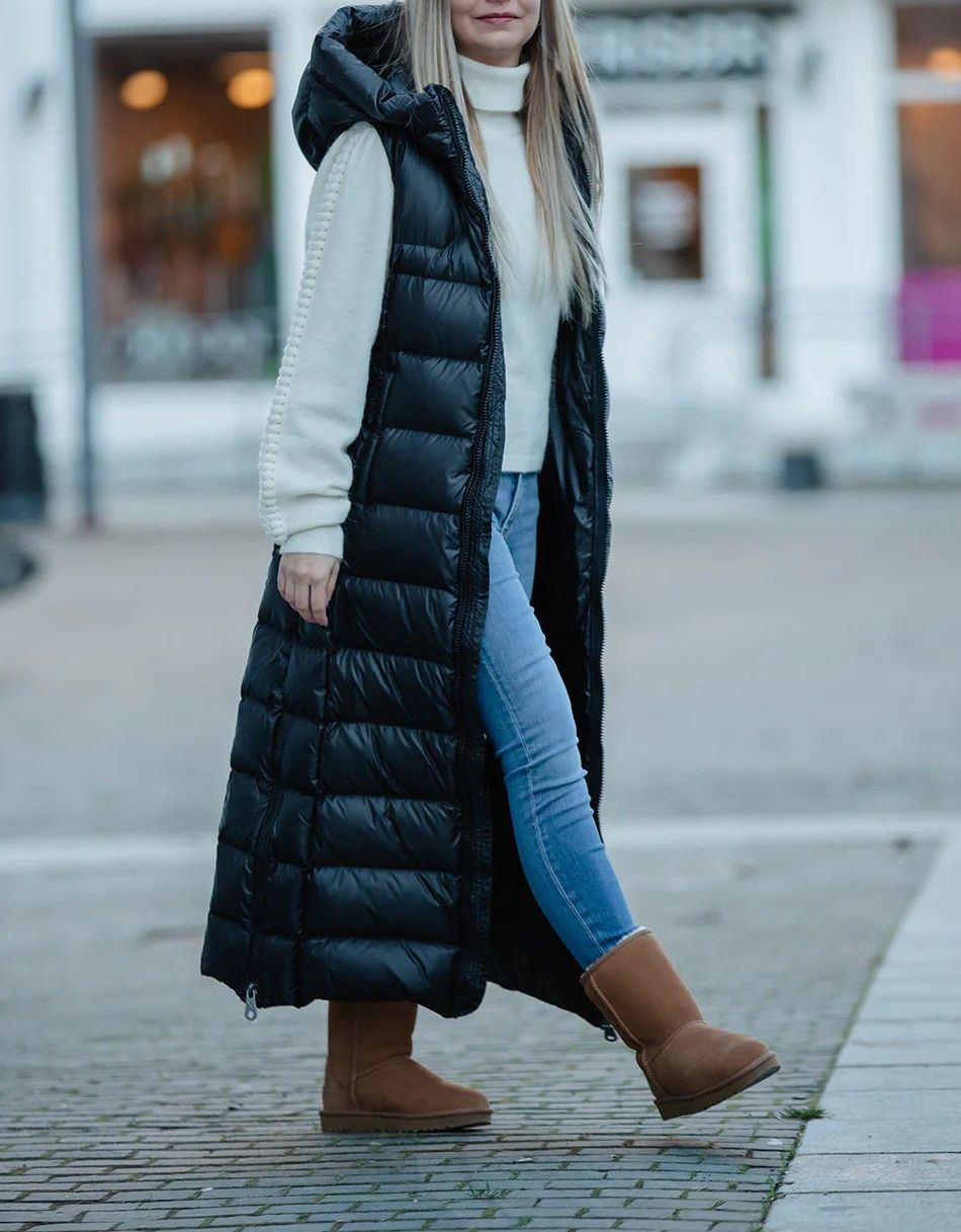 در مقابل، پافرهای بلند که تا زیر زانو یا مچ پا میرسند، عایق گرمایی فوقالعادهای دارند و برای روزهای بسیار سرد و حتی استایلهای نیمهرسمی مناسبترند. اگر جثه درشتی دارید، پافرهای با پف کمتر و دوختهای ریزتر، ظاهر جمع و جورتر و شیکتری برای شما ایجاد خواهند کرد. پافرهای بدون آستین یا همان جلیقههای پافر نیز یک آیتم چندمنظوره هستند که برای لایهبندی در پاییز و اوایل زمستان کاربرد فراوان دارند.
