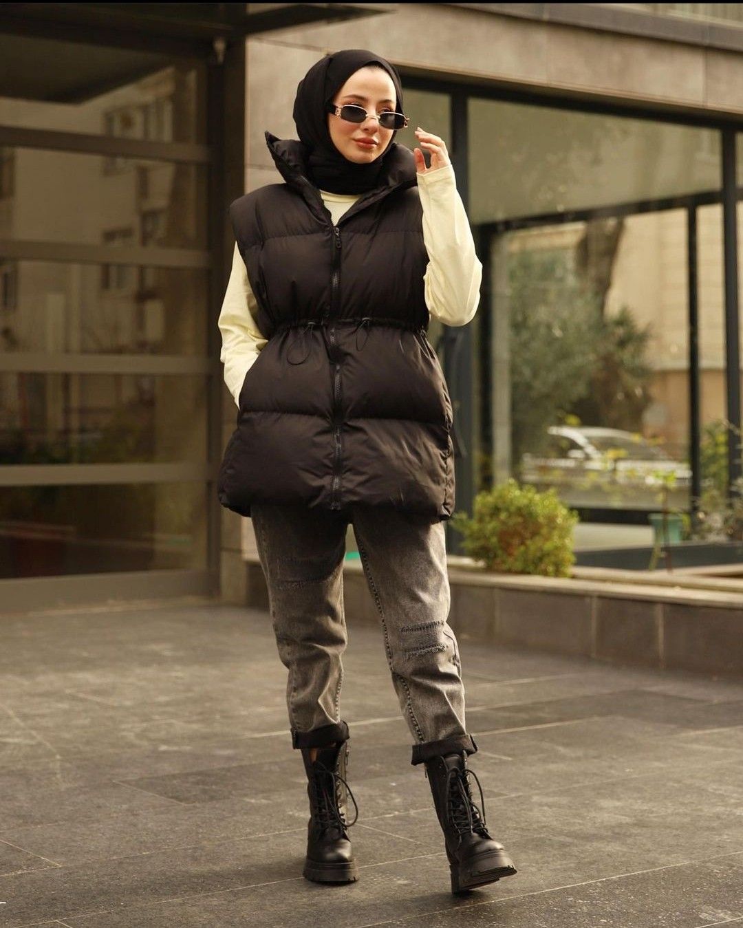 - پافر برای استایل رسمیتر: برای داشتن ظاهری نیمهرسمی، پافر را با شلوارهای پارچهای یا کتان ساده و فاق بلند ست کنید.