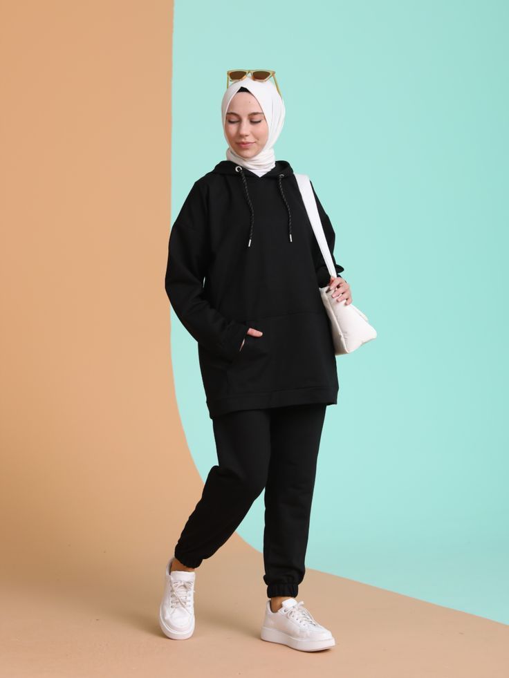پوشیدن هودی، شلوار و حتی کفش به یک رنگ، یک استایل مینیمال، شیک و قدرتمند را به وجود میآورد.