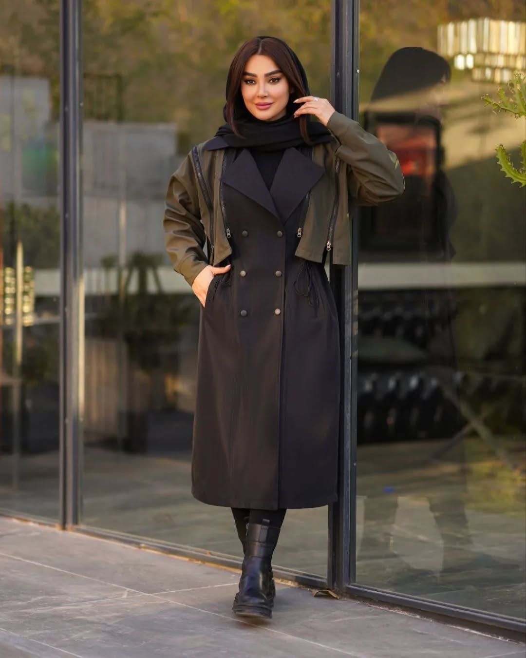 در کنار رنگهای همیشگی، رنگهای عمیق و قوی مثل سبز تیره (مثل رنگ زیتون یا یشم)، آبی خیلی تیره و زرشکی پررنگ هم برای بارانیهای بلند مد شدهاند. این رنگها یک جلوه خاص و متفاوت به لباس شما میدهند و برای خانمهایی که میخواهند کمی از رنگهای تکراری دور شوند، انتخابهای خوبی هستند. یک بارانی تیره را میتوانید به راحتی با لباسهای روشنتر زیر آن ست کنید.